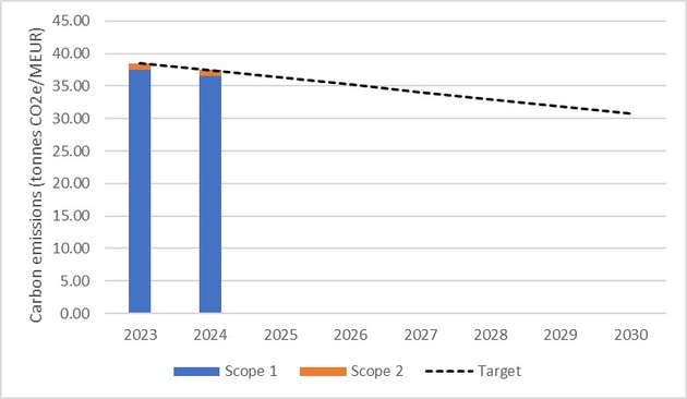 échelle de performance CO₂ IntroductionPoncelet Signalisation fait partie du groupe Trafiroad. Le groupe Trafiroad s'engage activement à réduire son impact environnemental et à utiliser de manière responsable l'énergie et les matières premières. Cet engagement s'inscrit parfaitement dans la vision stratégique du groupe Trafiroad : un entrepreneuriat durable avec un regard sur les personnes, la société et l'environnement. Afin de structurer nos efforts de manière structurée, mesurable et transparente, Trafiroad a choisi une certification selon l'échelle de performance CO₂. Cet outil encourage les organisations à cartographier, réduire et améliorer continuellement leurs émissions de CO₂ de manière systématique. L'échelle de performance CO₂ est un instrument reconnu pour la durabilité, utilisé à la fois par les gouvernements et les entreprises afin d'atteindre la réduction du CO₂ et de promouvoir l'entrepreneuriat durable. Trafiroad travaille actuellement à la certification de l'étape 1 de l'échelle de performance CO₂ (manuel 4.0). Cette étape vise à fournir un aperçu et à contrôler les émissions de CO₂ issues de nos propres activités commerciales.PolitiqueLe groupe Trafiroad s'engage à : se concentrer activement sur l'efficacité énergétique, la flexibilité énergétique, l'énergie durable et la réduction des émissions de CO₂ ;communiquer de manière transparente sur la consommation d'énergie et la performance du CO₂ ;travailler sur l'amélioration continue grâce à un système de gestion structuré ;Respecter toutes les exigences légales et autres applicables relatives à l'économie d'énergie, aux énergies renouvelables et à la réduction des émissions.Cette politique constitue le cadre dans lequel Trafiroad fixe, surveille, évalue et, lorsque nécessaire, ajuste ses objectifs énergétiques et de CO₂. La politique s'applique à tous les employés, agences et entités du groupe Trafiroad et inclut toutes les activités propres relevant des champs 1 et 2, notamment : la consommation d'énergie des bâtiments et installations ;la production et les processus commerciaux ;flotte et matériel roulant ;activités sur les chantiers de construction. Objectifs de réduction des émissionsEn collaboration avec Mantis Consulting, Trafiroad a cartographié ses émissions de champ 1 et scope 2 pour les années de référence 2023 et 2024. Nous faisons la distinction entre :Émissions de champ 1 : émissions directes issues de la combustion de combustibles fossiles, tels que le diesel, l'essence et le gaz naturel ;Émissions de champ 2 : émissions indirectes résultant de la production d'électricité achetée.Trafiroad applique des objectifs d'intensité pour ses émissions de gaz à effet de serre, exprimés par million d'euros de chiffre d'affaires (ajustés selon l'indice des prix à la consommation). Cette approche prend en compte la croissance de l'organisation et permet de surveiller les réductions d'émissions de manière équilibrée. Notre objectif est de réduire l'intensité combinée des émissions des champs 1 et 2 de 20 % d'ici 2030, par rapport à l'année de base 2023.In 2024 ; Trafiroad a déjà atteint une réduction des émissions de 2,7 % par rapport à 2023, ce qui montre que les mesures prises ont un effet.